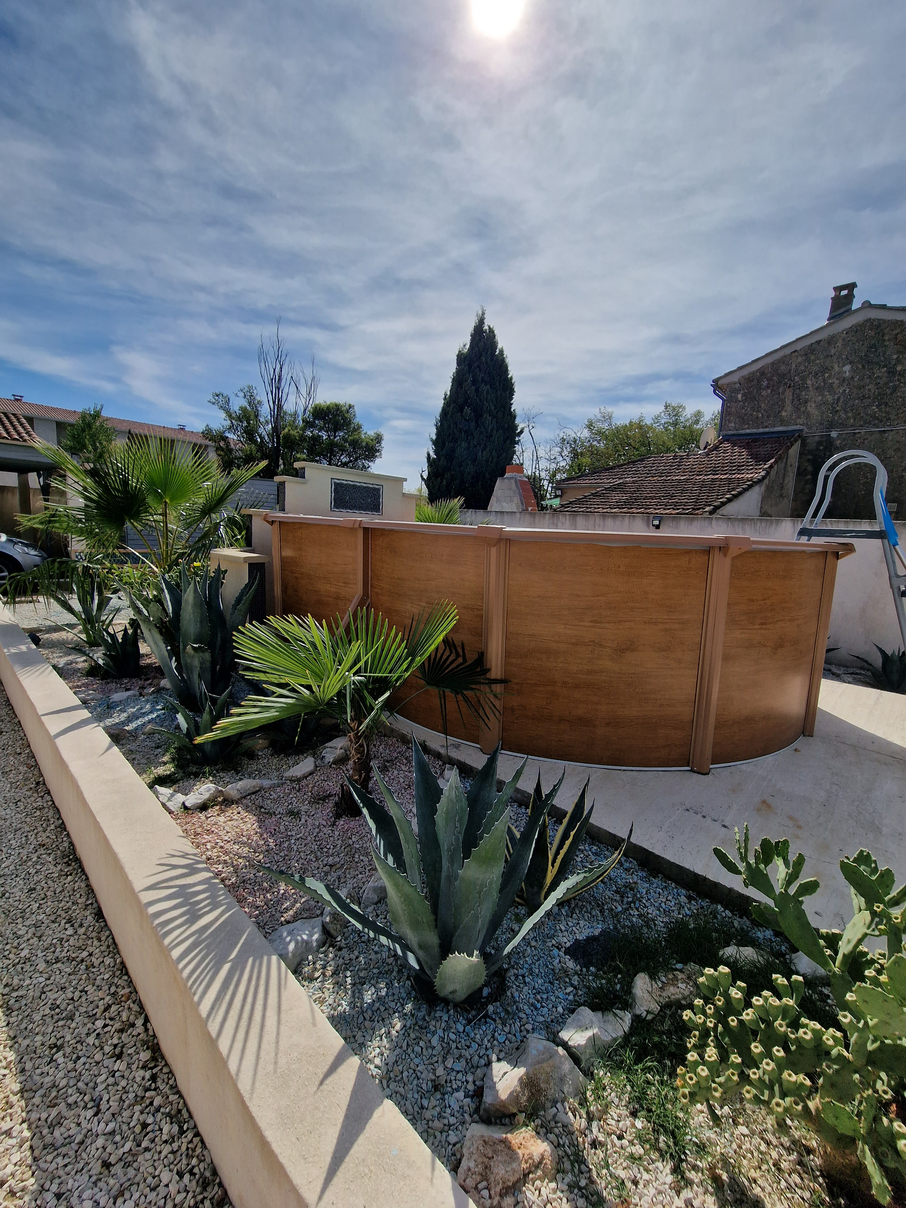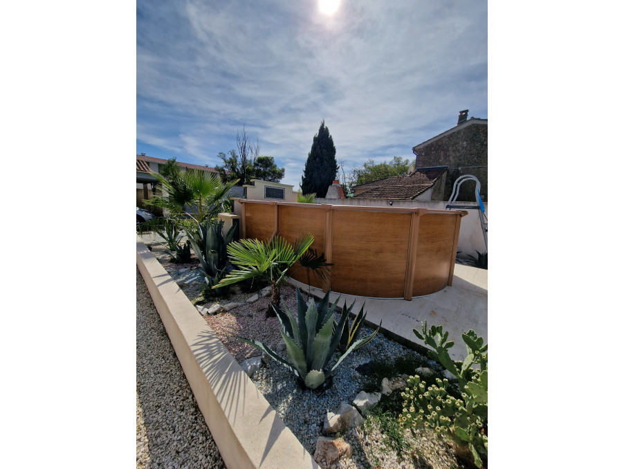 • Une piscine hors-sol neuve avec plage d’environ 20 m²,